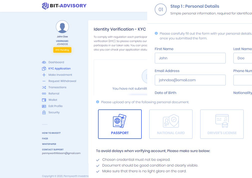 The primary purpose for the KYC Verification is to know our investors in order to provided services tailored to the needs also to verify that your uploaded informations where accurate.
